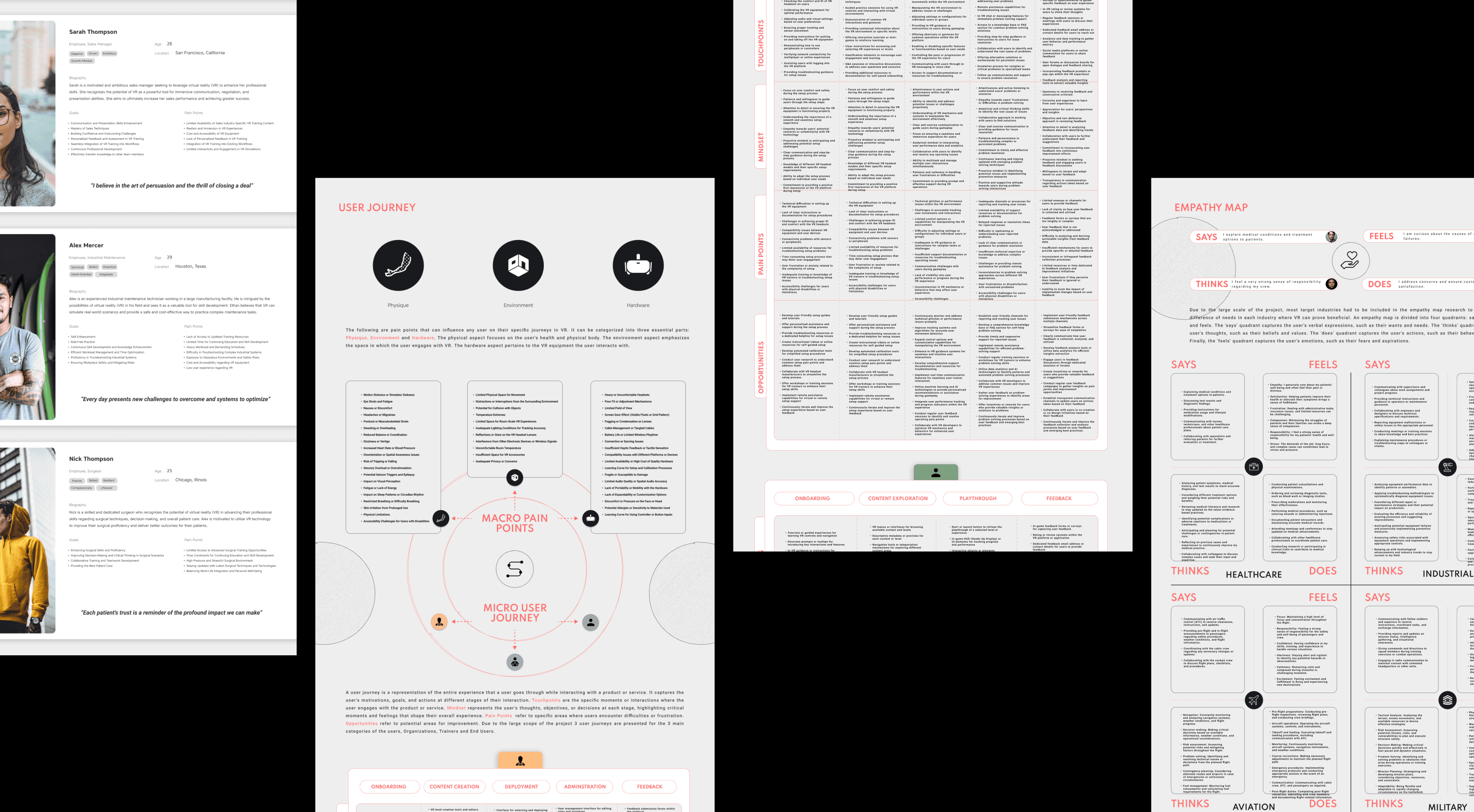 Led a full-spectrum research and design exploration into the use of VR across industries, focusing on usability pain points, training workflows, and performance tracking systems.